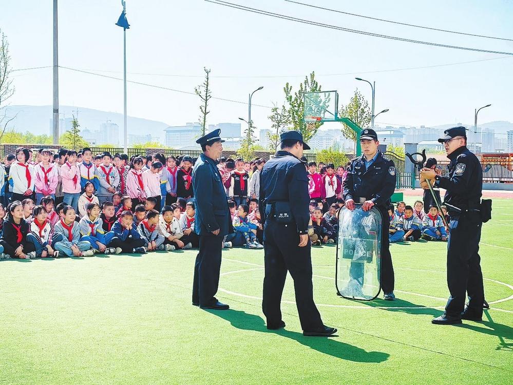 民警開展演練培訓。5月12日,臨洮縣公安局西郊派出所組織民輔警走進轄區學校開展反恐防暴應急演練培訓。新甘肅·甘肅法治報通訊員馬淑英攝