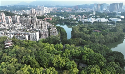 福建省福州市濕地資源豐富,全市濕地面積19.42萬公頃,濕地率15.14%,約占福建省濕地面積的三分之一,位居全國濱海城市前列。圖為近日拍攝的福州西湖——左海濕地公園沿岸城市風(fēng)光。 新華社記者 魏培全 攝