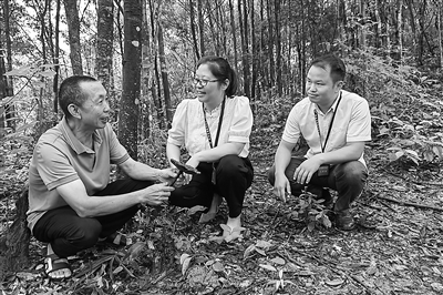 福建省龍巖市紀委監委將深化集體林權制度改革作為政治監督重要內容,不斷夯實高質量發展底色。圖為該市武平縣紀檢監察干部在萬安鎮捷文村林下靈芝種植基地了解有關情況。曹建橋 攝