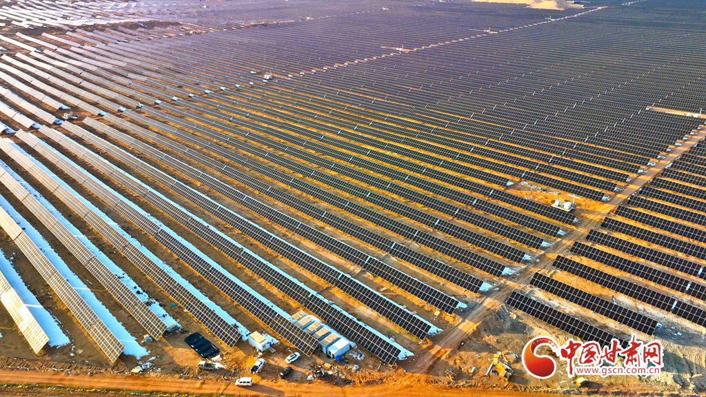 2月21日,張掖市臨澤縣板橋北灘20萬千瓦光伏發電項目建設現場,工作人員正在進行發電前的設備調試。