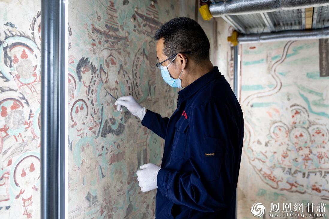 付有旭說,對敦煌壁畫有所破壞的鳥、鼠、蟲害如今已基本得到防治,而其他病害,各個洞窟面臨的類型和程度都不一樣,修復人員要找到最佳方案精準施工。比如被稱作壁畫“癌癥”的酥堿,其形成過程復雜,危害較大,最難治理,敦煌研究院的壁畫修復師們不斷研討方案,采用控制水分和濕度、用自制工具吸附鹽分等方法,因地制宜,才讓酥堿病害得到有效控制。