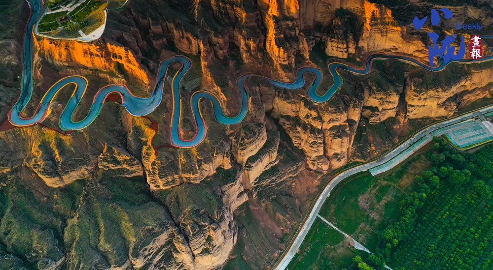 黃河自東南曲折流入,在龍灣轉(zhuǎn)而向北流,形成了深切峽谷,河水的奔騰不息,不僅塑造了峽谷的深邃與險峻,也為石林的形成提供了不可或缺的條件。日出時分,彩霞絢爛,石林山道彎彎,黃河蜿蜒,與金秋的田野、村莊相伴,河面映著霞光,石林披上金色的外套,一幅幅最美鄉(xiāng)村畫卷映入眼簾。
