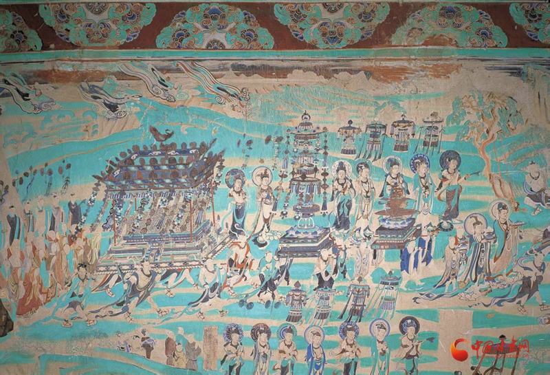跟隨時光投印在洞窟墻壁上的畫卷,人們可以回望千年前的繁華,品析朝代更迭的波瀾,透視先民們的生活。可以說,古代畫師們用顏料和畫筆,在宕泉河西岸的崖壁上,留下了精美絕倫的作品,留下了中華文明不斷延續(xù)的線條與色彩。