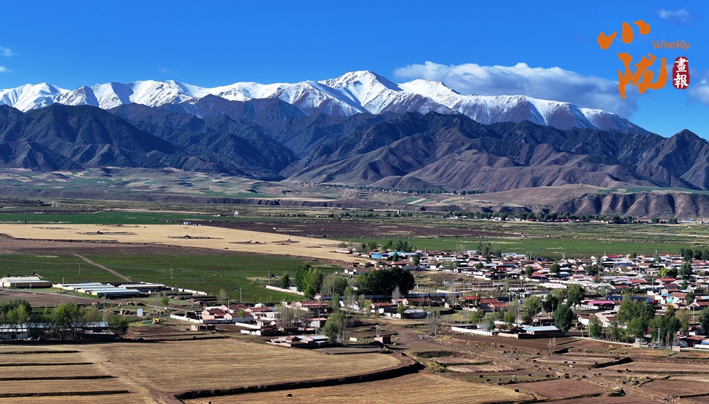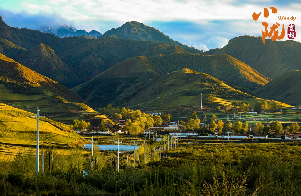秋風溫柔,山川壯美。祁連山腳下,泛黃的草原如同大地鋪開的地毯,伸向天際。遠處的山川,近處的村莊、樹木沉浸在金色的光芒中,一幅五彩斑斕的秋景圖。