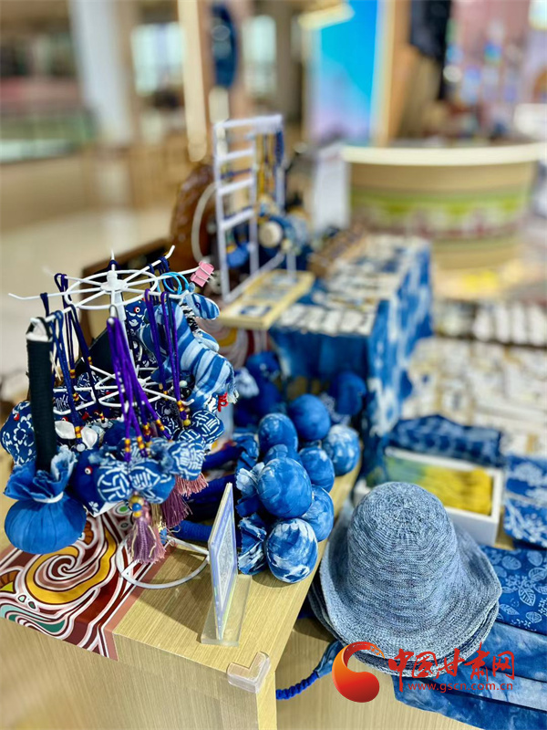 染好的布匹還要經(jīng)過脫漿、清洗、陰干,最后才是拆線、整理。當(dāng)一塊完整的藍(lán)印花布展現(xiàn)在眼前時(shí),李梅總會(huì)輕輕撫摸布料,仿佛在與草木對(duì)話。她的工作室里,掛滿了用藍(lán)染制成的物件:桌布上印著成片的板藍(lán)根葉,茶席邊緣綴著小巧的藍(lán)染布扣,就連她日常穿的棉麻衫,也是自己染的淡藍(lán)色。“這些布不是冰冷的商品,是帶著土地溫度的生活。”李梅說,去年她在平?jīng)龉懦情_了一間“藍(lán)染生活館”,游客可以跟著她學(xué)種板藍(lán)根、體驗(yàn)扎染,很多人第一次發(fā)現(xiàn),原來衣服上的藍(lán)色可以來自田野,非遺技藝能如此貼近日常。