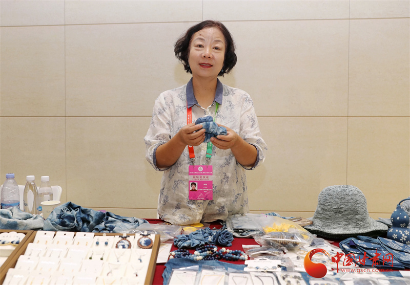 在第八屆進(jìn)博會(huì)的現(xiàn)場(chǎng),甘肅館以其獨(dú)特的人文底蘊(yùn)吸引了眾多目光。展館內(nèi),弧形山脈造型的背景,仿佛展現(xiàn)著甘肅的壯美風(fēng)光,而慶陽香包、敦煌絲巾等精美展品,則如璀璨明珠,訴說著甘肅的文化魅力。就在這其中,來自平?jīng)龅墓欧ㄋ{(lán)染技藝展臺(tái)格外引人注目,一件件藍(lán)染作品散發(fā)著獨(dú)特的草本氣息,向世界展示著非遺的獨(dú)特魅力,而這些作品的創(chuàng)作者,正是平?jīng)鏊{(lán)染技藝的市級(jí)非遺傳承人李梅。