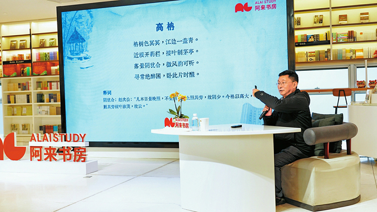“柟樹色冥冥,江邊一蓋青。近根開藥欄,接葉制茅亭。”最先賞析的是《高柟》,這首詩很寫實,并沒有驚人之語,但阿來特別將其放在首位,“從這首詩里看到可貴的自然主義精神,這在今天依然能給文學寫作者啟發。”