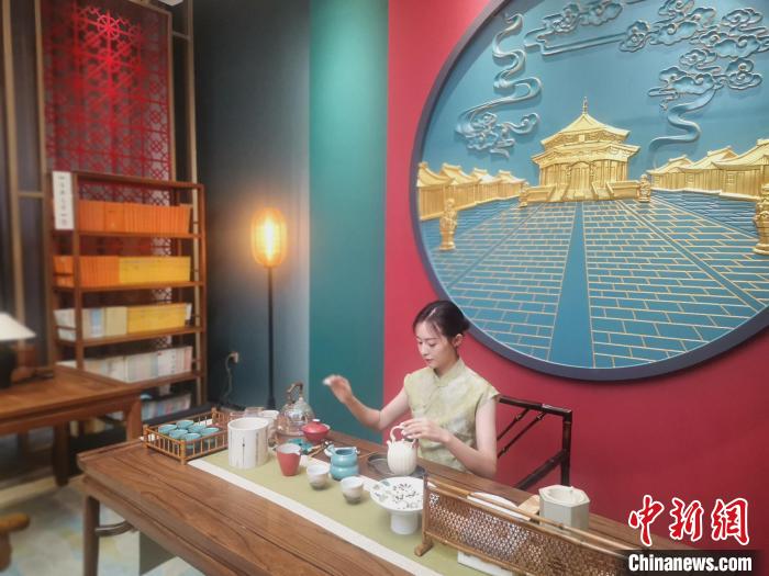 中新網沈陽4月19日電(記者 趙桂華 王藝霖) 中式園林的實景幕墻掩映著古風桌椅、宮廷地燈、中式書架等微景觀,讓讀者暢游書海的同時,仿佛置身中國古代書院書房之中。
