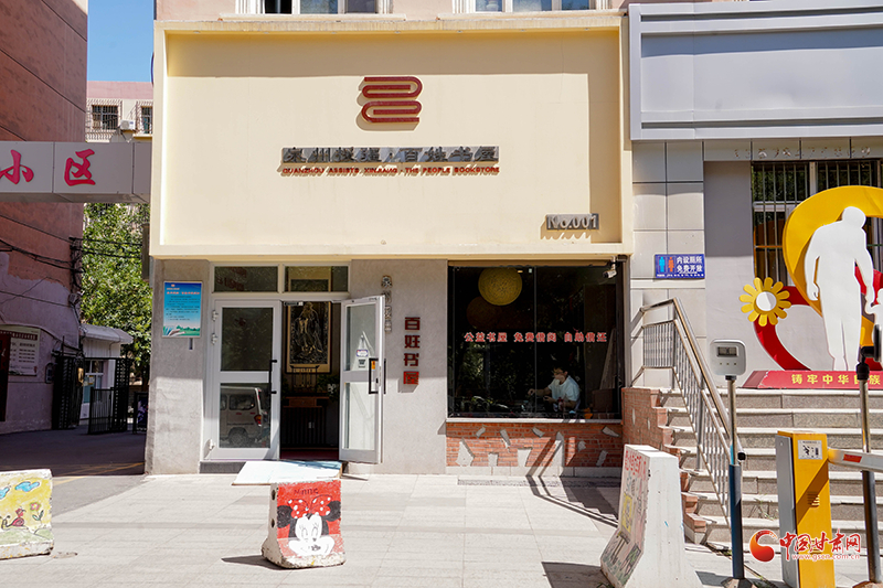 這是位于新疆維吾爾自治區昌吉回族自治州的一家百姓書屋,坐落于寧邊東路的昌吉市圖書館旁,是“泉州援疆·百姓書屋”項目的第一家書屋。像這樣的百姓書屋一共有八家,它們遍布在昌吉市的各個街頭。
