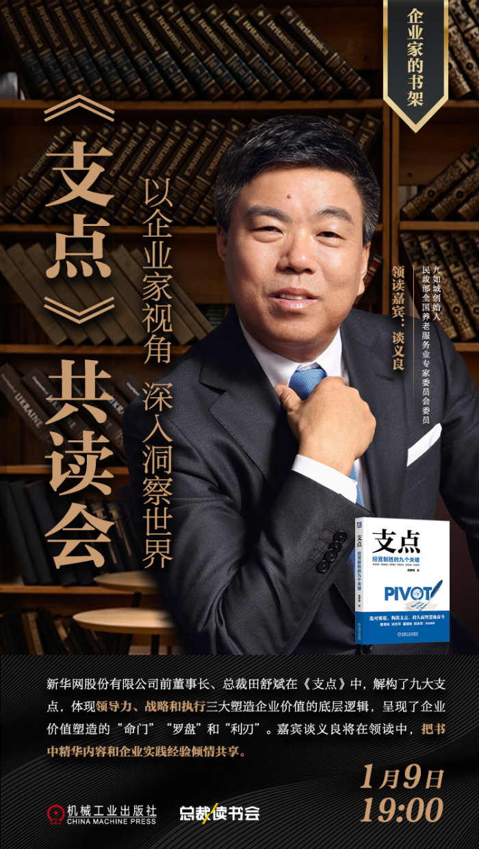 為了企業(yè)家更好地塑造企業(yè)價值,提升格局和眼界,1月9日19:00九如城創(chuàng)始人談義良將領讀《支點》一書,將在“認識管理”視頻號上進行直播。通過如何從多維度視角塑造企業(yè)價值、如何提升企業(yè)家的格局和眼界、如何做好團隊塑造,構筑人力資本基石三個方面,從企業(yè)家視角把書中精華內容和企業(yè)實踐經驗傾情共享,千萬別錯過。
