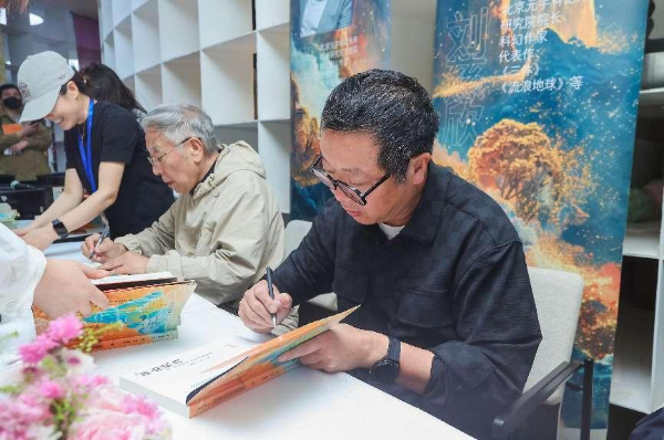 年會(huì)上還舉辦了“科幻中的故土情懷”圓桌論壇,由程婧波擔(dān)任主持人,董仁威、江波、甘偉康、石以、超俠、顧適、劉玉杰參加對(duì)話交流。當(dāng)晚在首鋼園•全民暢讀藝術(shù)書店舉行新書簽售活動(dòng),王晉康、劉慈欣、董仁威、超俠、寶樹、江波、程婧波、顧適等本書8位作者代表全書56位中國科幻重磅作家簽售,現(xiàn)場讀者數(shù)百人參加,快手新知平臺(tái)50余萬人在線圍觀,刷新了科幻圖書出版簽售少有的火爆場面。