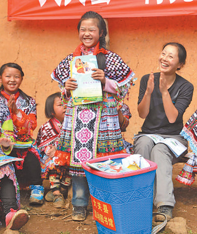 常紹慧和同事們?cè)谧咴L時(shí)了解到:村子海拔1500米以上,居住著50多戶人家,村民只能在地勢(shì)稍緩的地方種些玉米、土豆,收下的糧食,需要背著背簍步行到鎮(zhèn)上集市去賣;因?yàn)榇遄硬煌ü贰](méi)有學(xué)校,村里的孩子們要走到5公里外的學(xué)校去上學(xué)。常紹慧想,能為這里做些什么呢?她和同事一合計(jì),想出一個(gè)方案:“咱們圖書館有很多書呀,可以幫何家坡建一個(gè)‘流動(dòng)圖書館’!”