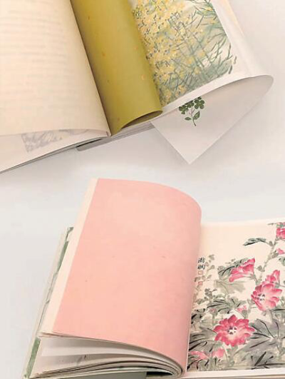 為了更好地呈現書籍裝幀效果,封面制作采用純色立體加印,不加任何裝飾。書中還配有由藝術家親手繪制的24幅珍藏版植物大圖,色彩溫潤典雅,撕取后還可自行裝裱。該書采用了傳統三孔古線裝的裝訂方式,以純天然麻繩全手工裝訂、配頁,共計58道工序。紙張切面三方全磨毛邊,呈現出自然肌理。章節頁所作的翻折處理,使得植物圖像在手工紙的覆蓋下若隱若現,虛實相生,既提升了主題的表現力,也增添了閱讀的趣味。
