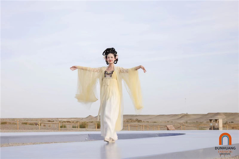 敦煌是絲綢之路上的一顆璀璨明珠,是東西方文明交匯的地方。位于敦煌的玉門關遺址是世界文化遺產,是可以欣賞“大漠孤煙直,長河落日圓”的關隘,是可以感懷“羌笛何須怨楊柳,春風不度玉門關”的古跡。敦煌潮韻,玉關霓裳“2023敦煌國際時尚周”開幕秀選在玉門關,是古老與現代,文化與歷史的交匯。