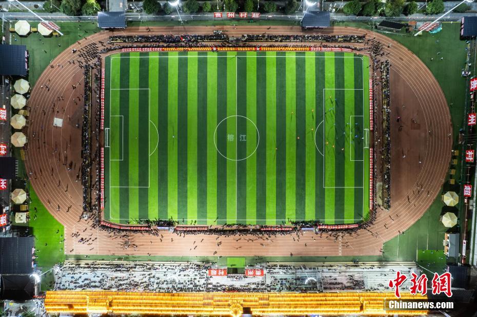 圖為1月18日晚,航拍2024年貴州“村超”預選賽現(xiàn)場。(資料圖)唐哲 攝