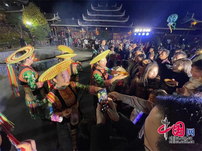 好在天氣給臉,年三十到正月初五,天天陽光明媚,溫暖熙熙,給演唱會的人氣奠定了很好的基礎。你瞧,穿巖山景區楓香瑤寨、千里古寨、雁棲山莊、蒲安沖民宿、時珍園康養上千個房間都住滿了游客,都連統溪河鎮上的酒店、客棧都是爆棚。從婁底趕來李小苑一家五口和唐詩一家三口,結伴而來,沒有住處,只好到遠離景區15公里的縣城住下,然后去景區吃晚飯,晚上觀看演出。唐詩對筆者說,我來過穿巖山,感覺這里的風景好看,工作人員也很客氣,有那么多的住宿點,我就沒有預訂。想不到來了之后,全訂完了。