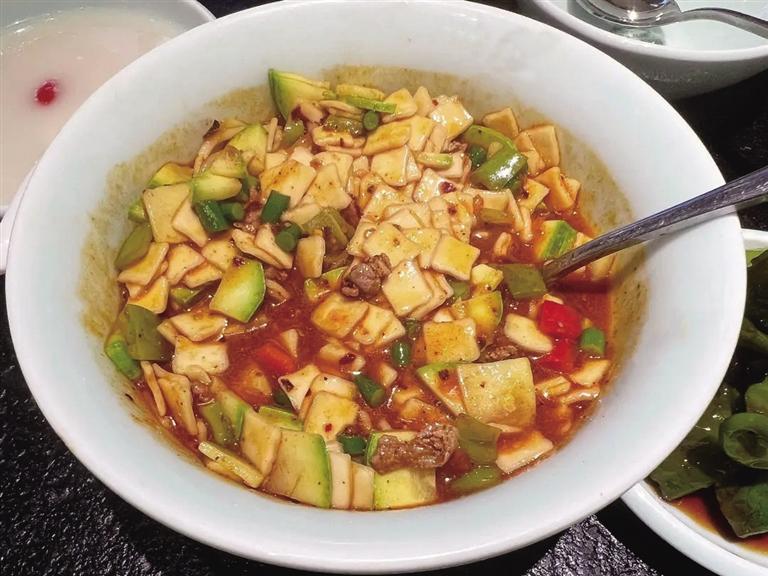 有固態(tài)和液態(tài)兩種形式,酸甜麻辣搭配油潑辣子,直接擊穿饑餓。蘭州炒面片,面片也是蘭州人喜歡的家常面之一,面片分帶湯和不帶湯的,不帶湯的稱(chēng)炒面片,蘭州炒面片也是一道風(fēng)味獨(dú)特的美食,無(wú)論是大街小巷還是酒店飯館都有它的一席之地,面片炒的柔韌筋道,番茄炒出的湯汁兒酸酸甜甜,多種蔬菜炒出的營(yíng)養(yǎng)美味,秘制油潑辣子的香,酸甜麻辣香都集齊了,再搭配上筋道的牛腱子肉、虎皮辣椒,麻辣香美可謂一絕。