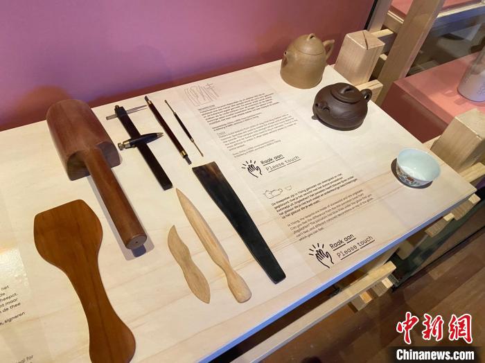 荷蘭世界博物館內展出的紫砂壺和制作工具。(受訪者供圖)