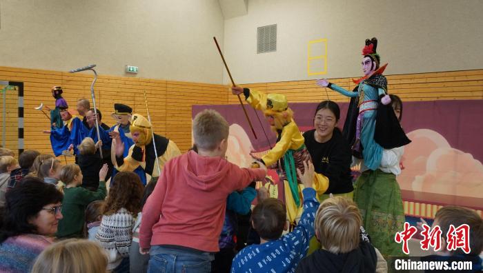 木偶藝術團22日來到柏林市三一小學,為該校一年級至四年級的學生們演出2場經典木偶劇節目《三打白骨精》。木偶藝術團通過精湛的杖頭木偶操控技藝,結合京劇武打、真人演繹,生動傳神地展示了中國傳統文化故事,引發了孩子們的驚嘆。