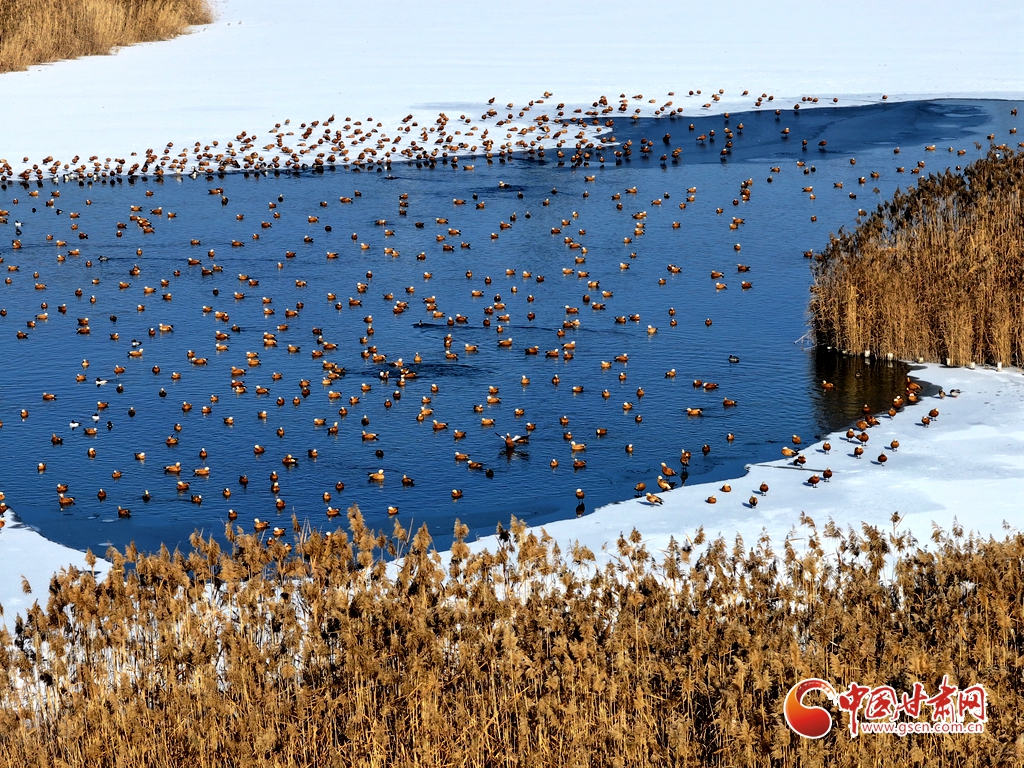1月11日,甘肅省張掖國家濕地公園里,成群的赤麻鴨棲息覓食,成為濕地一道亮麗風景。