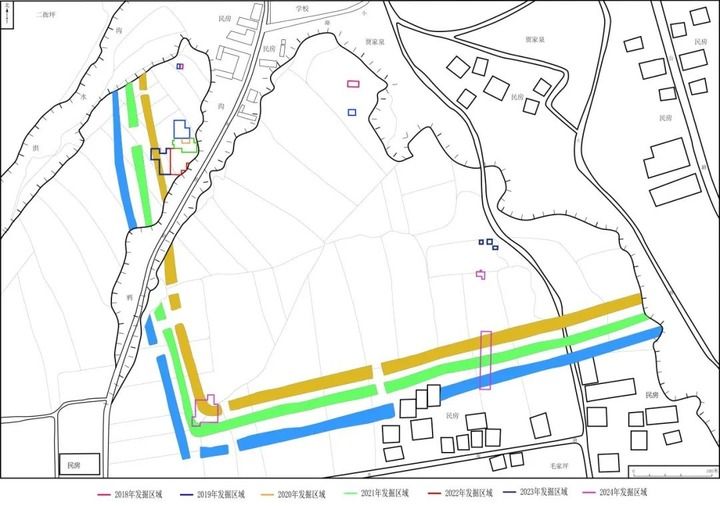經過2018年至2024年的7次考古發掘,千年塵封的馬家窯文化聚落緩緩浮現。總占地面積達近百萬平方米的聚落由三重“圍壕”環繞,內部房址密布,灰坑、陶窯、墓葬交錯。令人訝異的是,三重平行分布的“圍壕”每條寬達9至11米,內、外圈深約3至4米,且并非傳統的圓形或不規則形,而是規整的長方形形制,與后世城墻“拐角”結構十分相似。