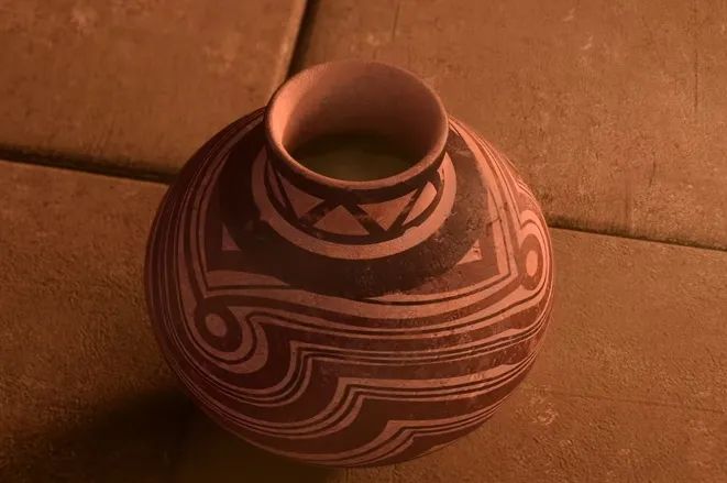 聚落西側,陶窯青煙繚繞。匠人屈膝修整泥胎,赤鐵礦研成的褐彩順陶罐流瀉,旋渦紋隨轉盤飛旋延展。孩童赤足追逐,泥塑鳥獸滾落草間,驚散啄食的雞雛。