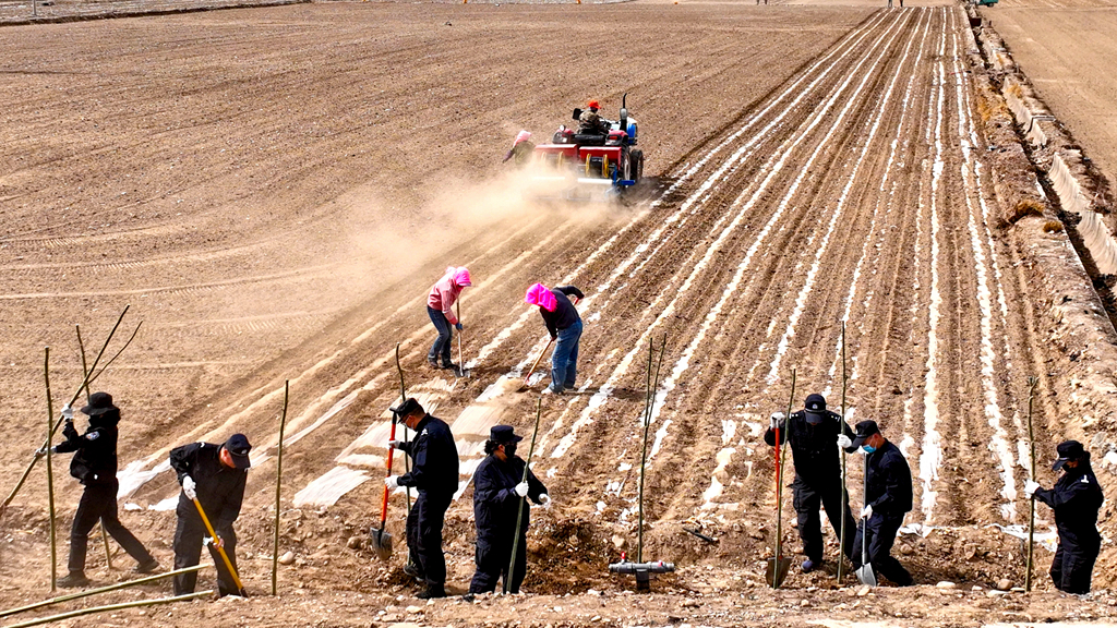 4月10日,張掖市甘州區開展2025年春季義務植樹暨農田防護林建設活動。1300多名干部職工和志愿者們共同參與,栽植新疆楊、河北楊、梨等鄉土樹種1.2萬株,致力于建成長18公里,寬3米的高標準農田格化防護林網,將覆蓋保護7846畝農田。