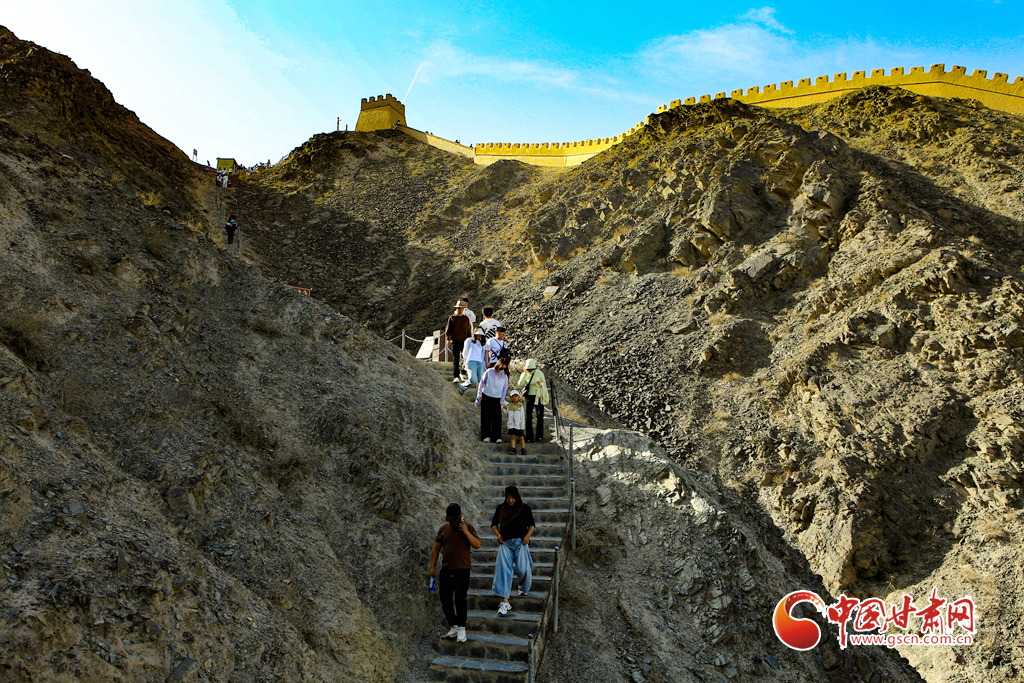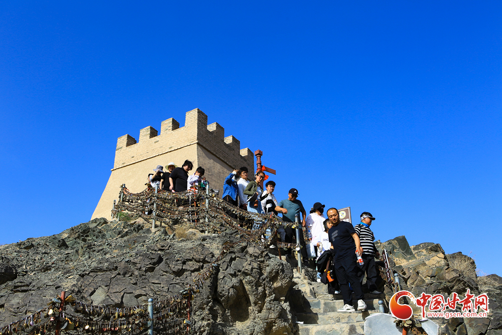 “五一”假期,甘肅省嘉峪關懸壁長城旅游景區迎來了客流高峰,景區內游人如織,熱鬧非凡。來自五湖四海的游客們紛紛慕名而來,踏上這段陡峭險峻的懸壁長城,親身體驗其獨特的雄壯偉岸。他們站在城墻上,極目遠眺,盡情領略著古長城所獨有的壯麗自然景觀與深厚歷史底蘊。