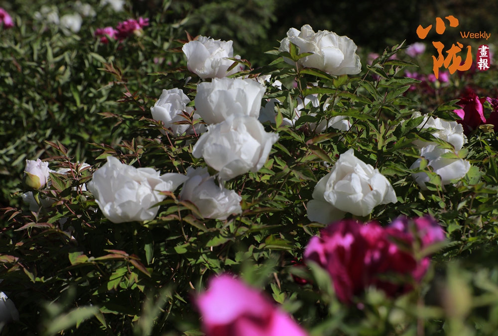 陽光照射下,牡丹粉的如霞,嬌艷柔美;白的像雪,純凈典雅,還有紫、黃等多種色彩相互交織,花朵碩大且花瓣層層疊疊,在微風中輕輕搖曳,散發出陣陣淡雅的清香,讓人陶醉其中。