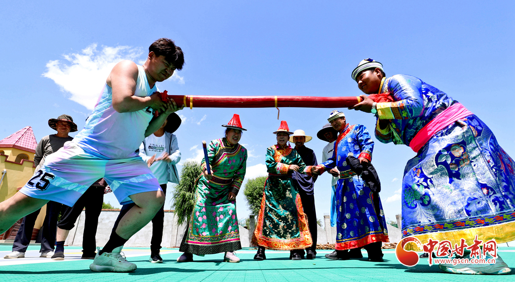 6月14日,張掖市肅南裕固族自治縣明花鄉“石榴花開共歡歌·同心筑夢共富裕”文化展演暨農牧民運動會火熱開場。裕固族、藏族、蒙古族群眾身著盛裝,開展民族歌舞文藝匯演、青年歌手大賽和和獨具特色的民族傳統體育競技——拉爬牛、頂杠子、女子拔棍、射箭等。陜西、青海、內蒙古等地近萬名游客齊聚于此,共賞大漠風情,感受民族文化魅力。