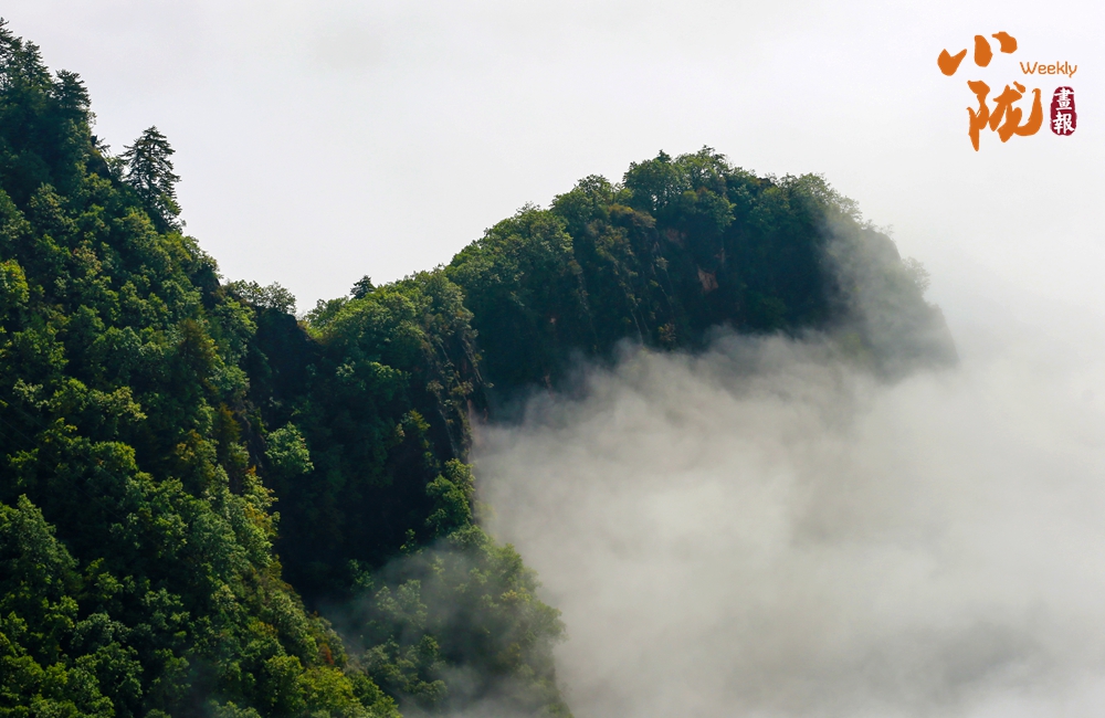 雨后初霽,云霧自幽谷翻涌升騰,如浪濤席卷峰巒,遠(yuǎn)處山影在云濤中若隱若現(xiàn),恍若蓬萊仙島。霧氣氤氳間,林海、亭閣若隱若現(xiàn),恰似一幅流動(dòng)的水墨丹青。