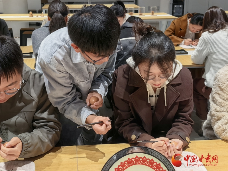 第一期非遺傳承公益課隨之拉開帷幕,非遺傳承人積極發揮傳幫帶作用,手把手用情傳授“蛋雕技藝”,青年學員們用心感受刻刀舞動在蛋殼上的文化痕跡,讓非遺技藝綻放出青年對非遺的熱愛,讓青年在沉浸式體驗“活”著的非遺中,堅定文化自信、激發創造熱情。